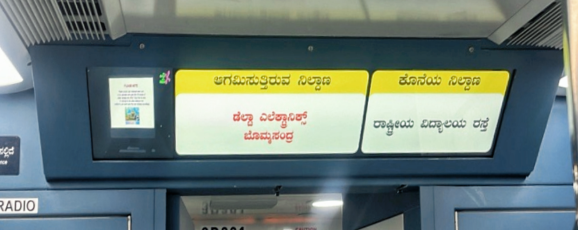 黄线连接 RV 路(Ragigudda)至 BSK站(Bommasandra),贯通了包括巴萨瓦纳古迪(Basavanagudi)与电子城(Electronic City)在内的重要商务、科技和教育枢纽。这条线路为往返电子城的专业人士提供交通便利,显著缩短居住区与电子城工业区的通勤时间,惠及数十万科技从业者,被莫迪称为“改变通勤规则的里程碑”。