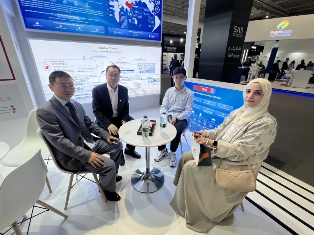 展会首日,华启智能展台便迎来了持续的参观与交流热潮。包括沙特业主SAR,以及中车、ALSTOM、SIEMENS等多家车辆厂企业的高层代表先后莅临;铁建国际、中土集团、中交港湾等单位专家也陆续到访参观。双方在既有合作项目的优化升级方面交换了意见,并围绕未来新线路规划中的新功能及运维分析等前沿应用,开展了深入且富有建设性的交流。现场气氛热烈,为后续深化合作奠定了良好基础。
